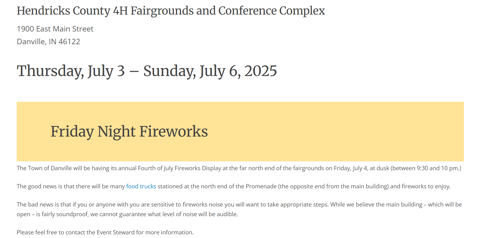 Scrolling down the page, I put in a note about the Friday night fireworks that were happening at Hendricks County Fairgrounds.