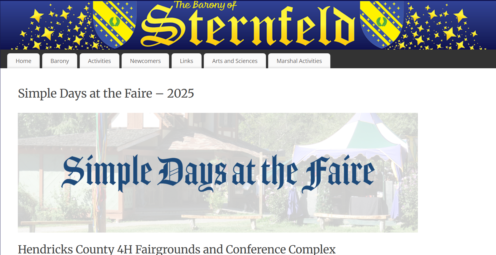 Following are screenshots from the Simple Days at the Faire website I created for the Barony of Sternfeld for the Society for Creative Anachronism (SCA), a pre-17th century historical reenactment group located in Indianapolis, Indiana.